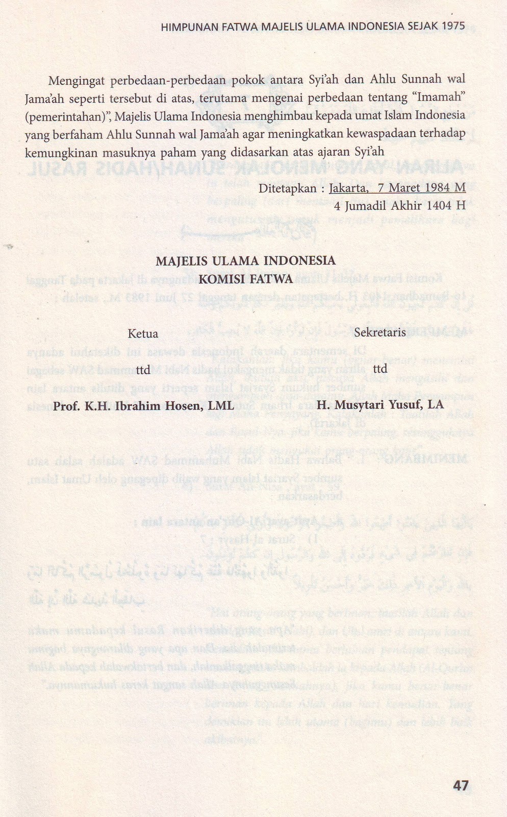 - Fatwa Asli MUI tentang Kesesatan Syi'ah